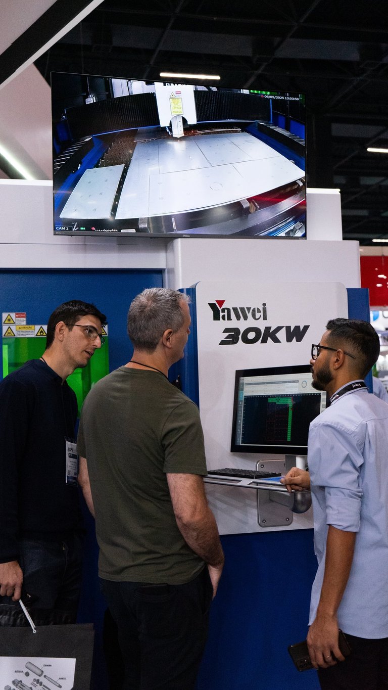 Cobertura completa com fotos e videos em Real Time no stand da Yawei Brasil, na EXPOMAFE 2025. Video de apresentação da maquina captado no stand da Yawei Brasil no EXPOMAFE